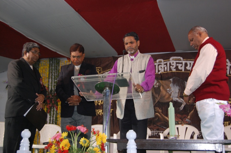 CLOSING PRAYER BY BISHOP WARRIS .K.MASIH (DIOCESE OF RAJ,CNI) WITH CONVENTION SECRETARY,VICE CHAIRMAN & CHAIRMAN